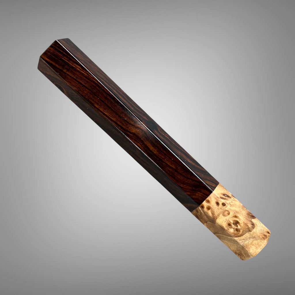Custom Japanese Knife handle (wa handle) for 165-210 mm: Desert ironwood and Japanese elm burl