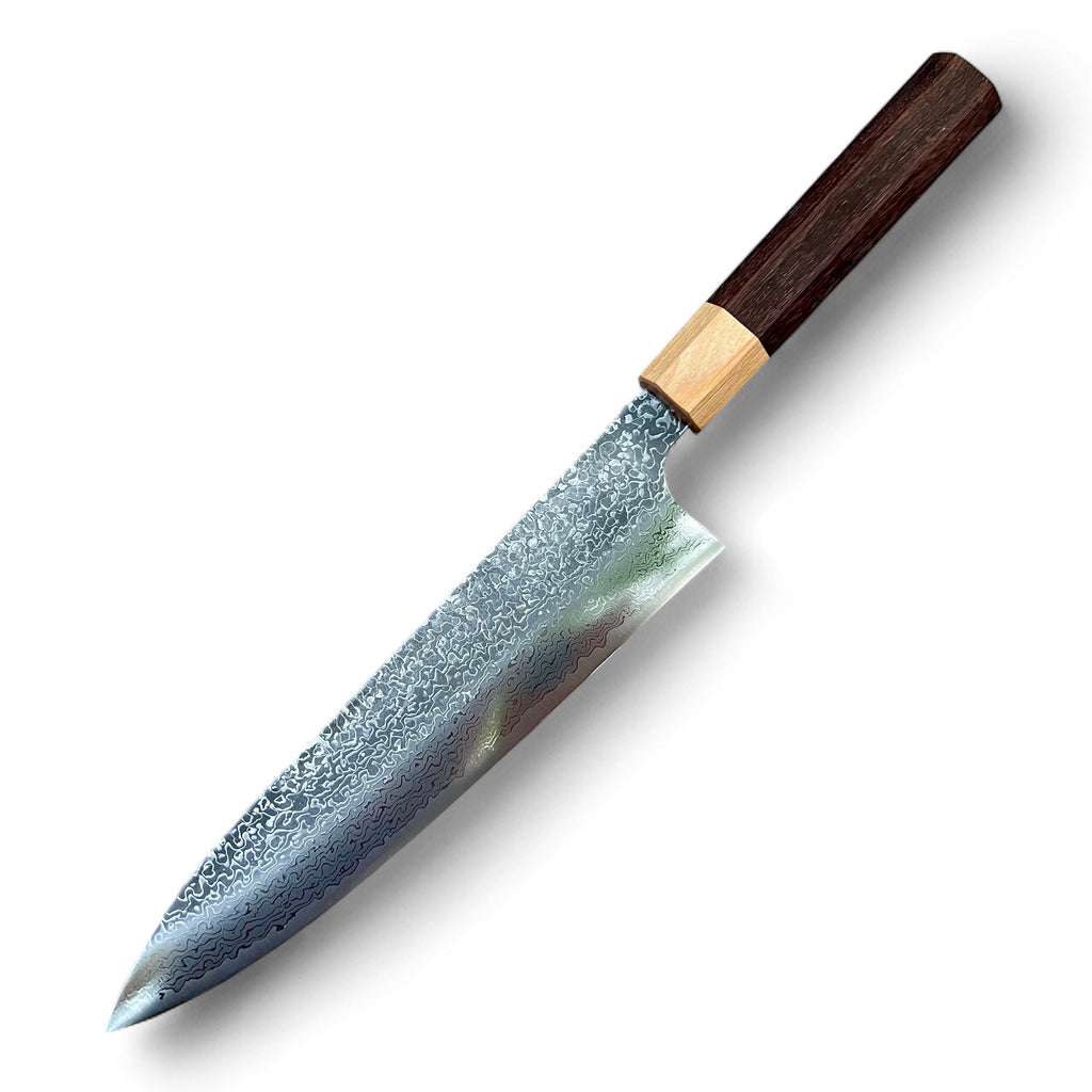 These are very nice lasers made from high powered SG2 for excellent edge retention and sharpness. These are super thin with an excellent finish. The Damascus and jigane are executed with expertise.