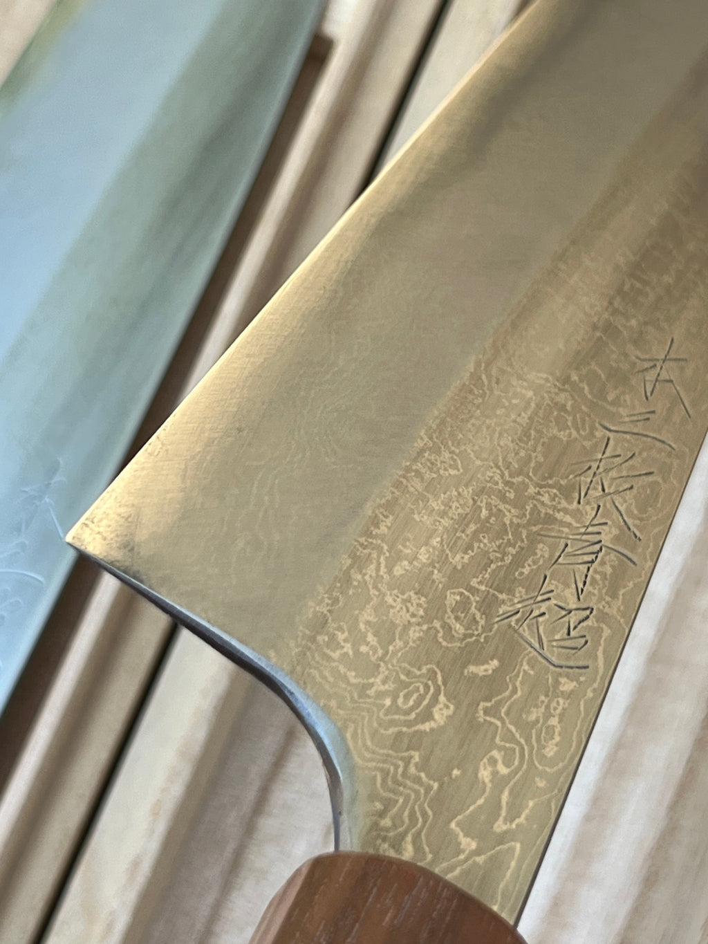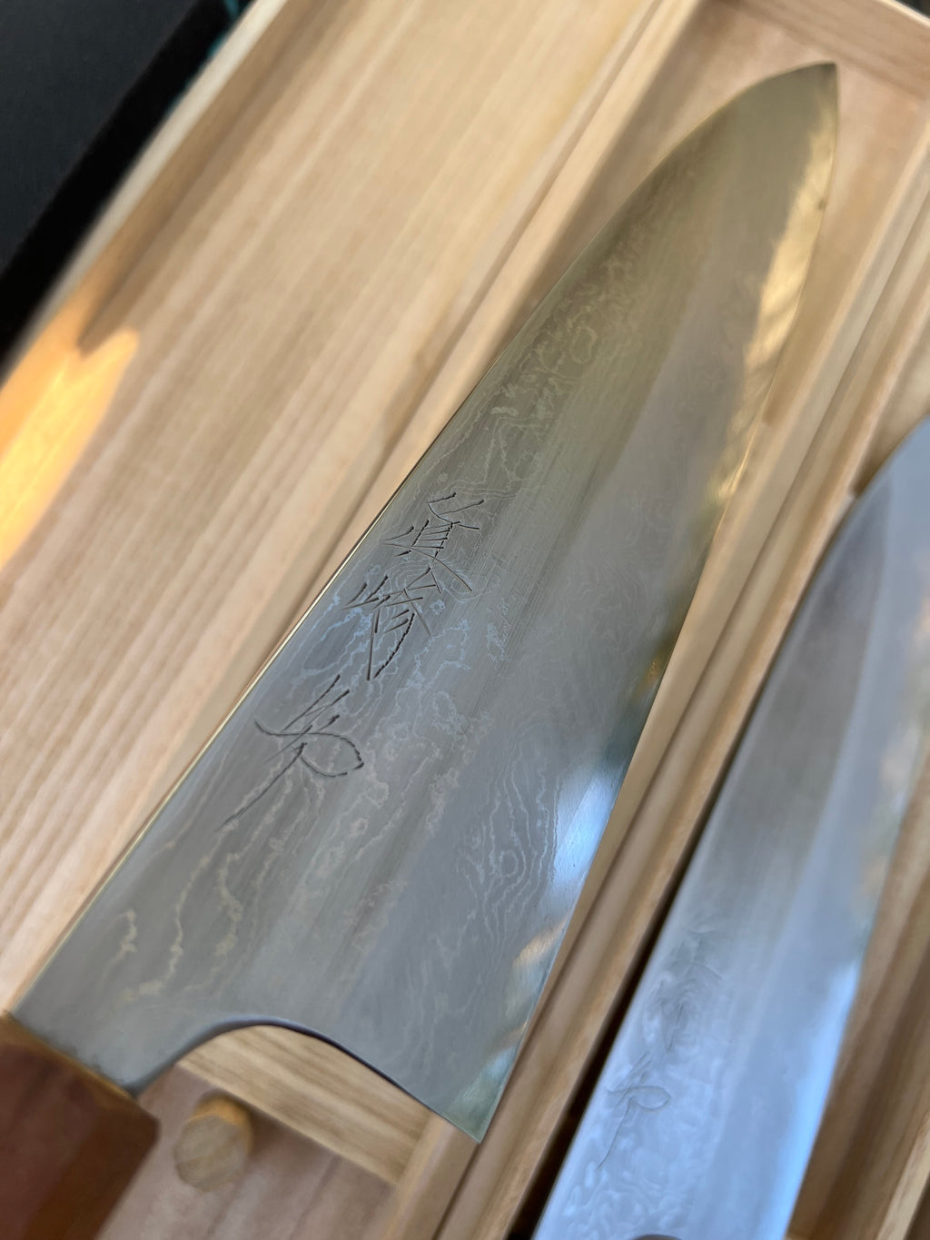 Mazaki San is an amazing blacksmith working  out of Sanjo City in Niigata. He trained under the famed Kato San.  He operates alone working each piece from start to finish. His Damascus line is created from scratch and each one is a labor of love